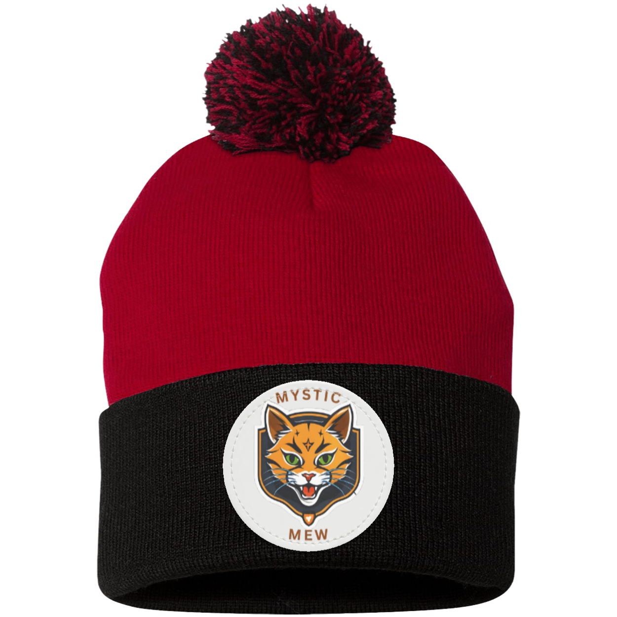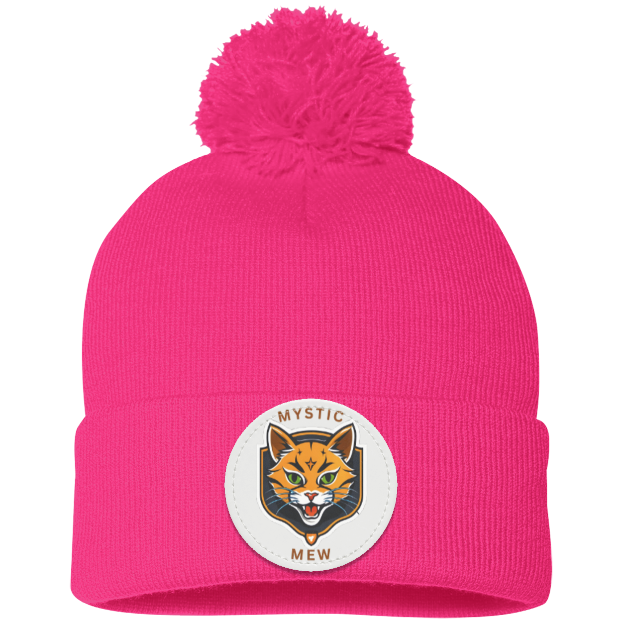 Mystic Mew | Pom Pom Knit Cap | Patch Beanie |